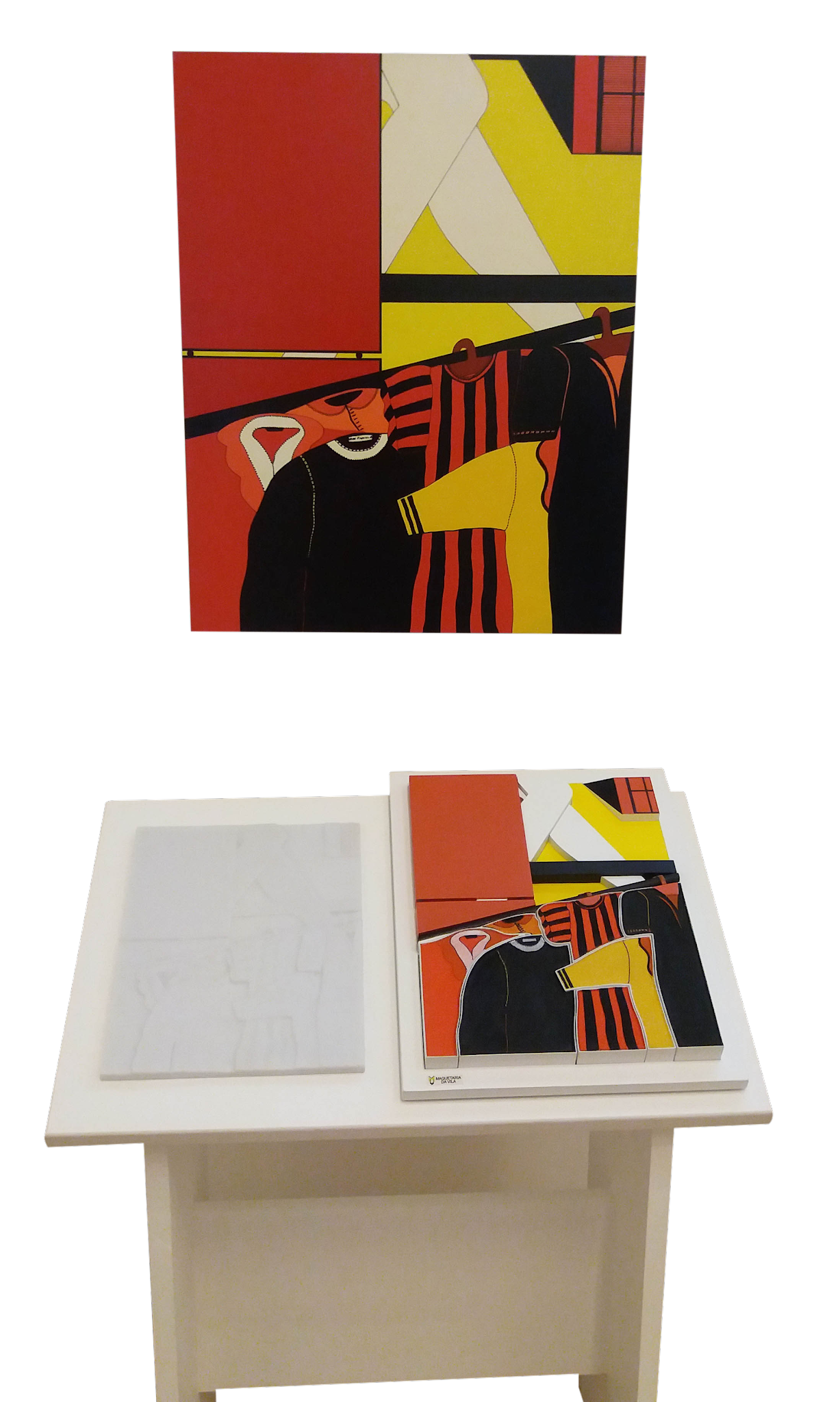 A peça tátil tridimensional pode ser elaborada por modelagem, impressão 3D, fundição, ou o que for mais adequado de acordo com a proposta da obra original, mantendo suas relações de isomorfia.